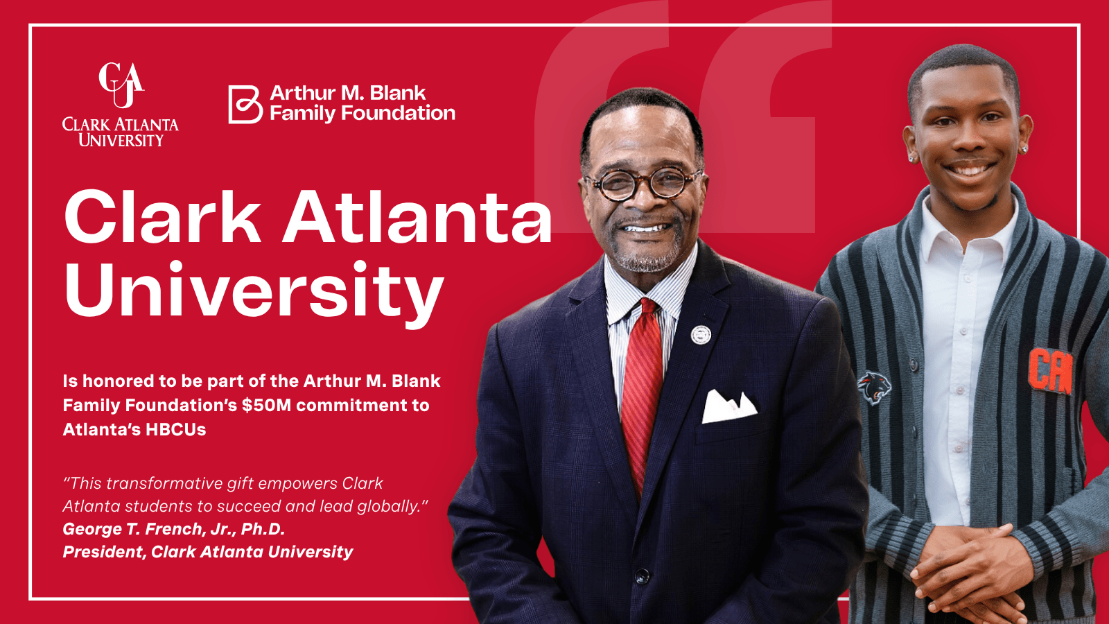 “This transformative gift provides the critical resources our students need to graduate and prepare for leadership in the global marketplace,” said George T. French Jr., Ph.D., president of Clark Atlanta University. “Far too often, we see talented students forced to leave school not because of academic challenges, but due to financial constraints. We are profoundly grateful to the Arthur Blank Family Foundation for this historic investment in our students’ futures.”