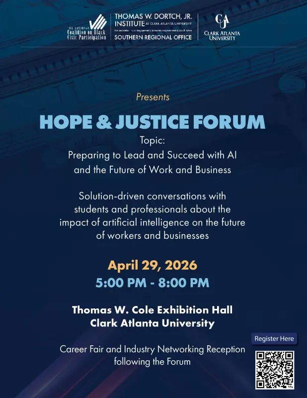 Join us to talk about AI and the Future of Work and Business. It will be located in the Thomas W. Cole Exhibition Hall from 5:00-8:00 p.m. There will be a Career Fair and Industry Networking Reception following the Forum